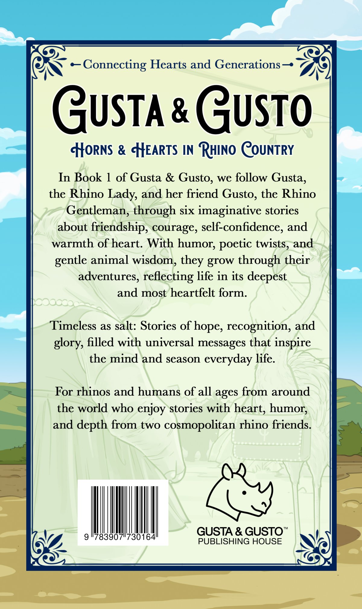 - Gusta & Gusto Horns & Hearts in Rhino Country Book 1 – Back Cover